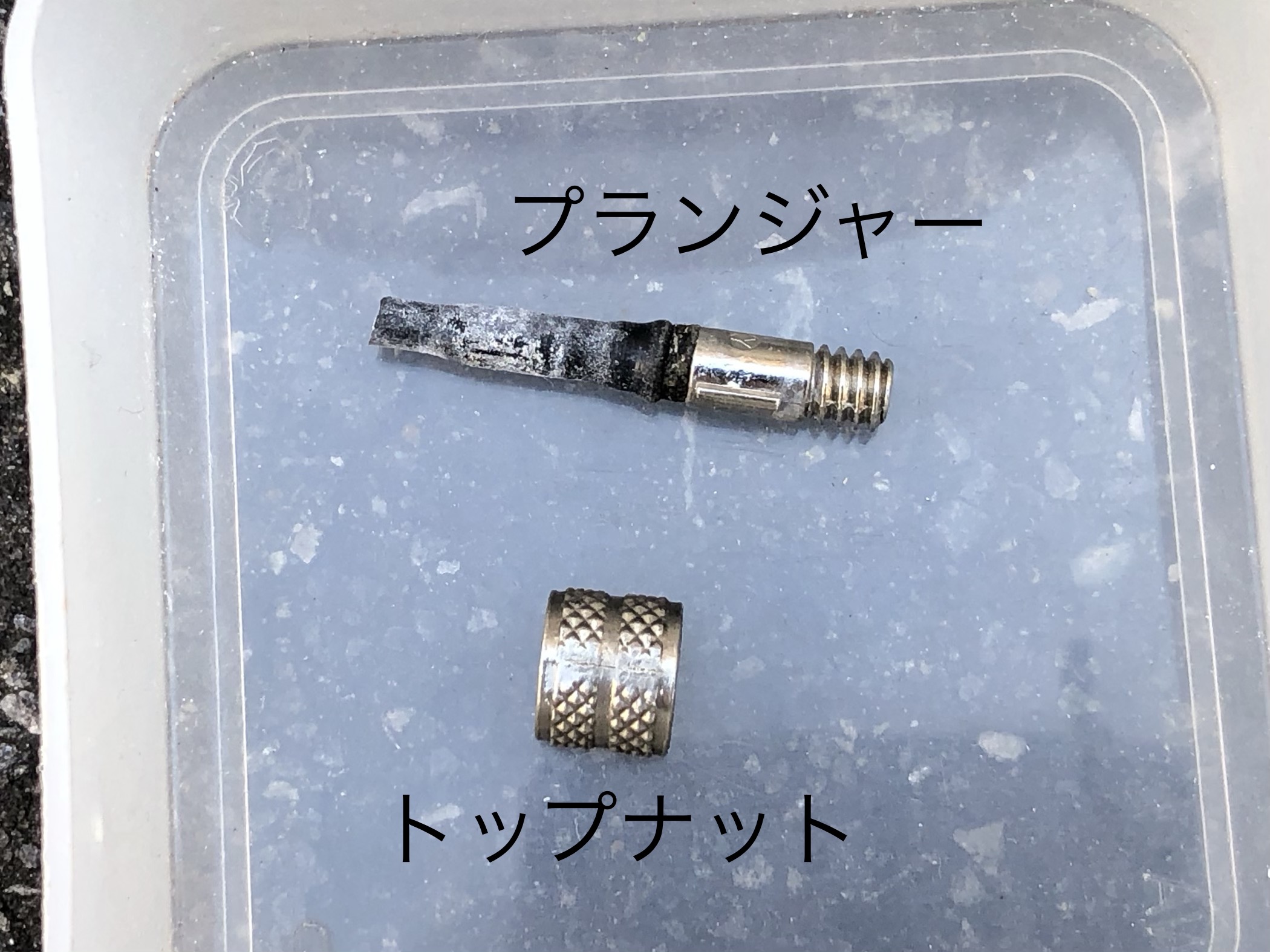 バルブからトップナットとプランジャーを取り外せば空気がぬけます。↓