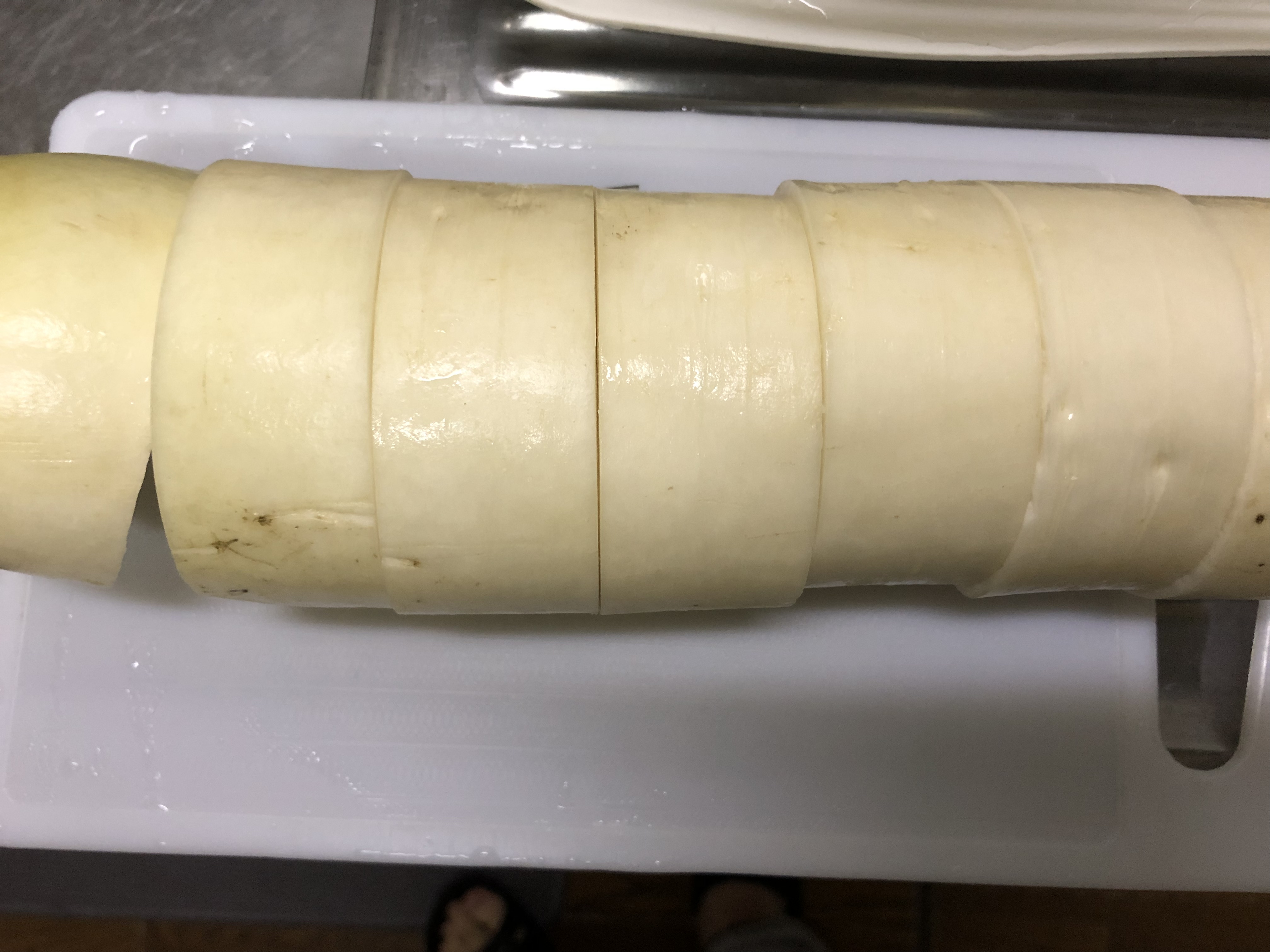 そこで、おでん用の大根の仕込み方を書いておきます。